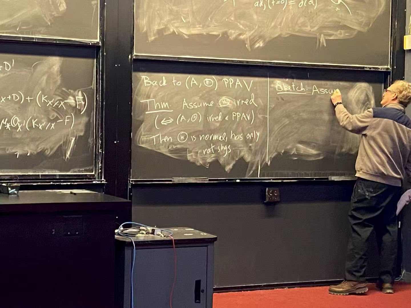 Today I attended the MIT–Harvard Algebra–Geometry seminar with my two children. The lecture focused on multiplier ideals and vanishing theorems — topics from advanced algebraic geometry.